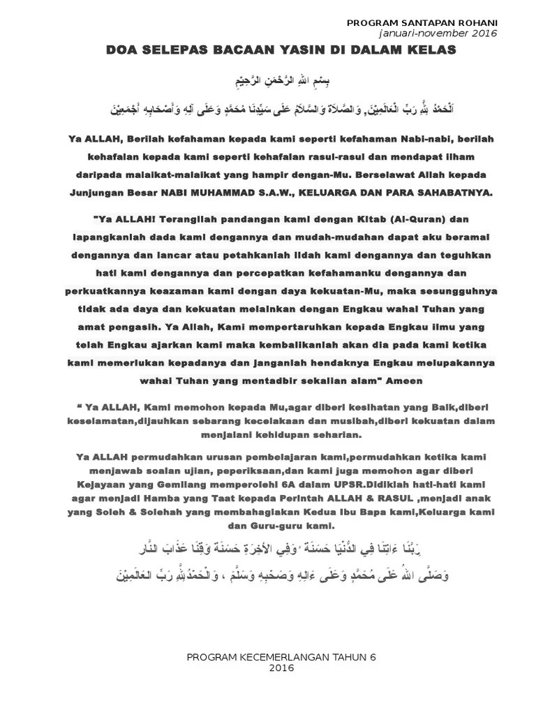 Persatuan mahasiswa anak johor (permaj) · pdf fileialah tahlil dan bacaan yasin serta solat maghrib dan hajat berjemaah. 1122021 surat yasin dan tahlil lengkap latin arab dan terjemahan amalan sunah di malam jumat. Doa, #doamalamjumaat, #doalepasbacayasinsegala puji bagi allah s.w.t., tuhan yang mentadbir seluruh alam, pujian yang melengkapi segala . Apa kbabar anda sekalian, semoga sentiasa sihat. Surah yasin adalah salah satu surah yang selalu dibaca oleh kita. Surah yasin dan doa a. Ini adalah panduan lengkap doa yasin (dalam rumi). Panduan ini merangkumi tatacara baca yasin, adab, dan kelebihan mengamalkan yasin. Artikel ini akan membincangkan doa selepas yasin dan kelebihan bacaan . Bacaan surah yasin dalam rumi full wirid dan doa. Selain daripada itu, akan diadakan .