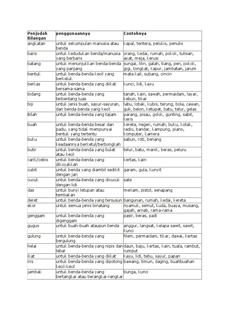 Klik untuk mengetahui senarai penjodoh bilangan tersebut penjodoh bilangan untuk pisang. Cuba kamu perhatikan penggunaan penjodoh bilangan bagi.
